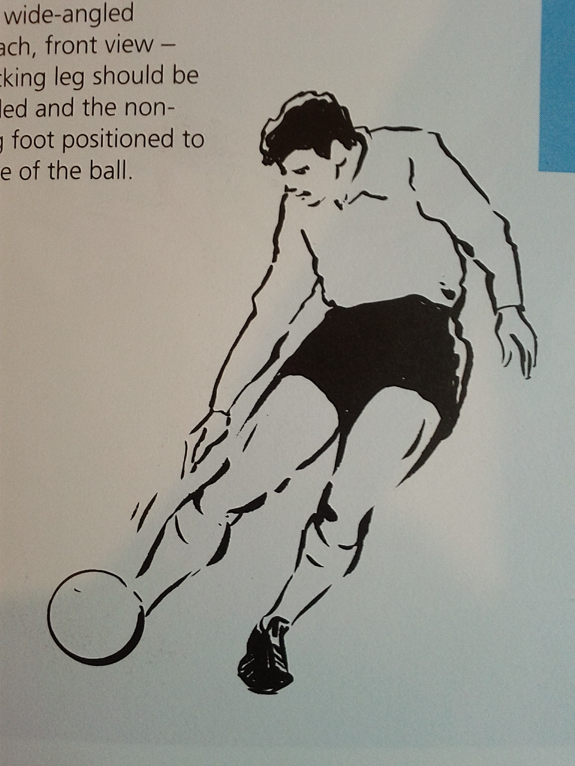 - The contact: the contact should be the top half of the ball because the aim is to drive the ball downwards to make it more difficult for the goalkeeper to save it. In terms of which part of the body should be used, I prefer using the head rather than the feet because it requires little adjustment to the running stride.