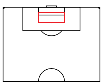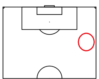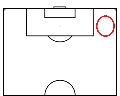 This area is just inside or outside the penalty area near the goal line. As mentioned before, it is difficult for the winger to get into this area unless he can beat the defenders by dribbling or by pace. Moreover, it is rarely possible for the winger to play the ball to the back of the defense because the defenders will position themselves in and around the 6-yard box